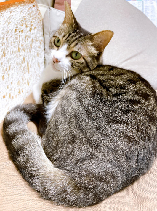 ユウ専用のようになっているソファの座布団に 珍しく、アミ姐さん!かつて、私の隣の席はひとりっ子時代のアミの寝床でしたが ユウを迎えてからはユウ···