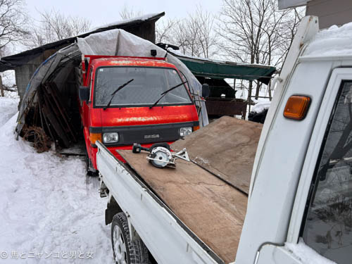 この年末に来て故障した赤いトラック フクちゃん。 34歳なんで部品が見つからんらしい。 なんちゃっ庭の除雪はなんとかなるがなんちゃっ亭の除···