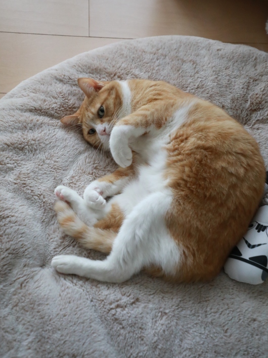 床暖房の上のふかふかでのんびりするユウ。そういえば昨シーズンはふかふかの上にテントベッドを一つ置いたらアミ姐さんも入っていたっけなぁと。 ふ···