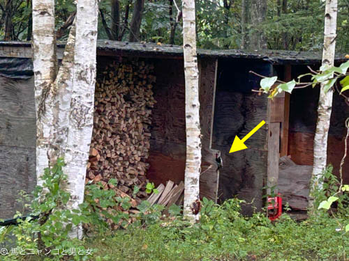 ニューよしみヶ池のオタマジャクシはすべてカエルになり旅立ったようだが 引っ越しした魚 の様子を見に行ってる。 その途中にある薪棚にアカゲラ···