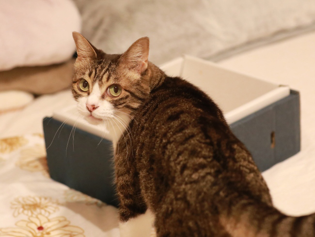 窓を開けるといつもよりざわついた気配が室内に流れ込み警戒するアミ姐さん。昨夜は浦安市の花火大会で人間たちはベランダで鑑賞。昨年は天候のせいで···
