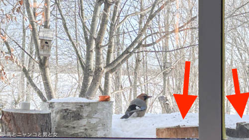 野鳥食堂のテーブルは丸太の切れっ端。 もう何年使ってるのかわからん。 今さらながら みすぼらしいとの指摘有り。一昨年 桜の風倒木を持って帰っ···