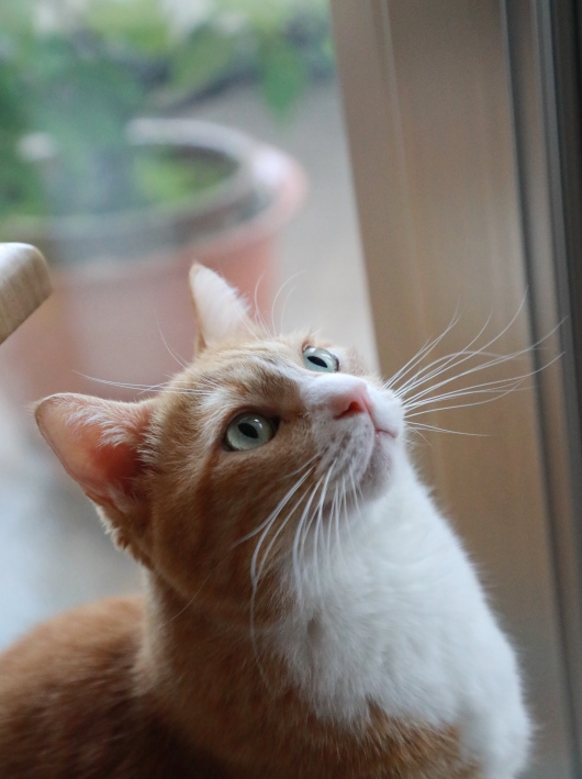 日が傾いてからベランダの植物への水やりをして室内に戻ろうとすると駆けつけたユウのおめめがきらんきらん☆窓を開けておいて欲しいもよう。 夕方とい···