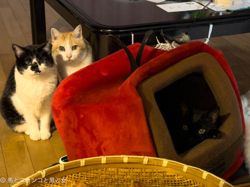 みんな おやすみ。 えっ!そっちには何も おらん よな? 怖いこと せんとって ヾ(ーー ) 馬・猫・リス みんな温かい所を知ってる。 ココを···