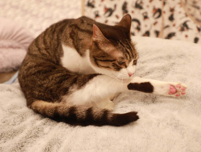 寝室の猫Feelで 毛繕いするアミ姐さんを警戒されないように少し離れて待っているっぽいぬくもり泥棒ユウ。姐さんのぬくもりの残る猫Feel狙いだったの···