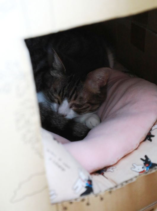 寒がりなアミ姐さんがちょっかいを出される心配なく床暖房でぬくぬく過ごせるようにと リビングに設置した姐さん専用ハウスでしたが姐さんの残り香好···